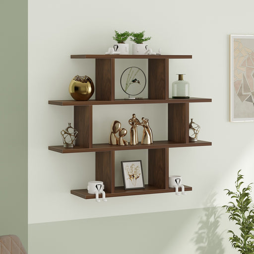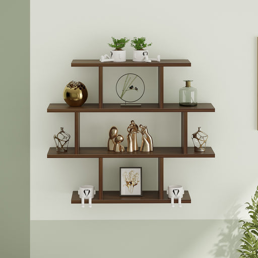 NewSenara-4 Layer Wall Mount Design Engineering Wood Bookshelf Filing Cabinet Books Rack Organizer for Décor Display for Library Living room Study Room (Color - Brown Maple)