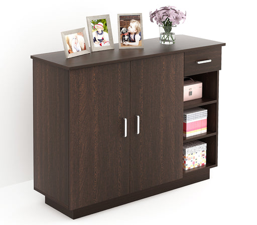 Seonn Bookshelf Cabinet Book Rack Organizer with Shelves for Décor Display, Drawer and 2 Doors Cabinet Floor Standing for Home Library (Without Drawer)
