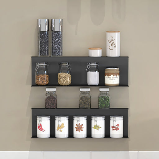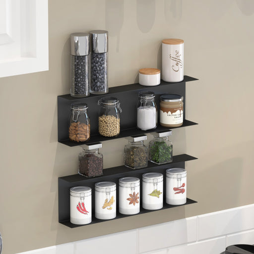 NewChanorr Spice Racks Cabinet Shelf Organizer Bottle Rack Holder designed for storing spice bottles Floating Shelf Display Rack for Kitchen Home Furniture (Black, Set of 2)