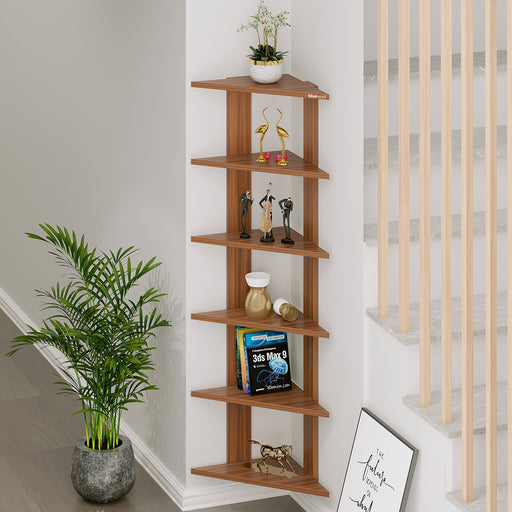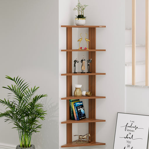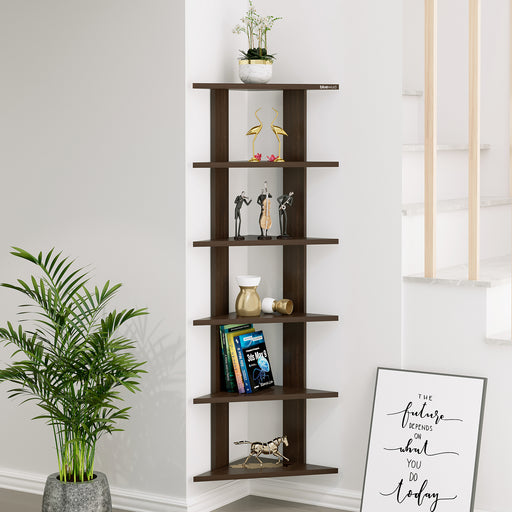 Wudville Braine Wall Mount Corner Shelf, Display Rack, (6 Square Shelves - Walnut)