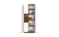 Color - Brown Maple & White, Type - Floor Standing, Including - Stylish LED Display Shelf, Open & Closed Storage Combination, Space-Saving Vertical Design