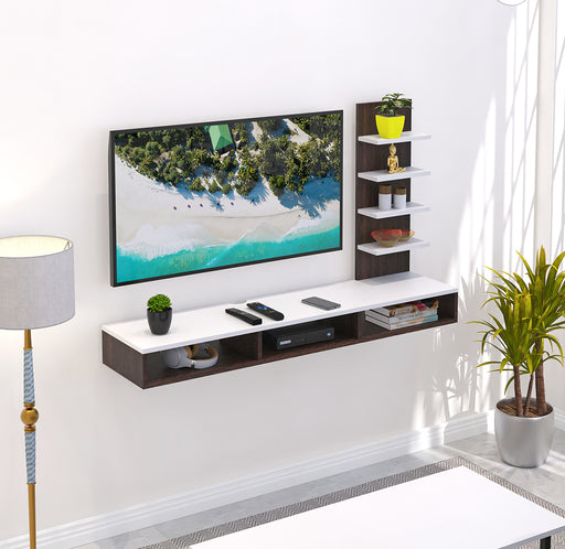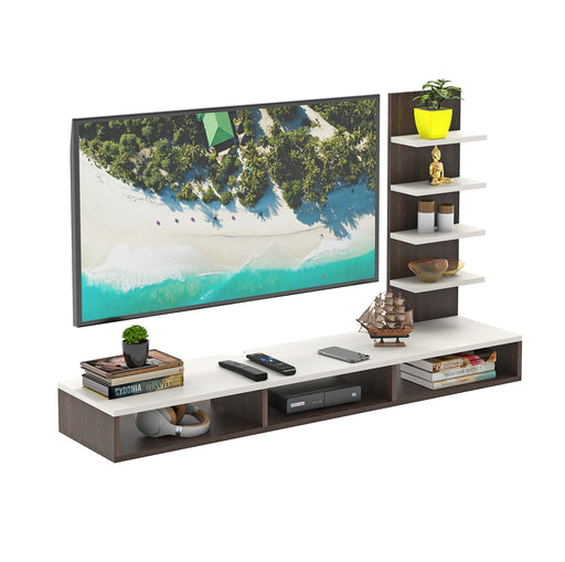 Aero Engineering Wood Wall Mount TV Entertainment Unit Set Top Box Stand/TV Cabinet with Shelves for Books & Décor Display Unit Bed Living Room Large Upto 50 Inches
